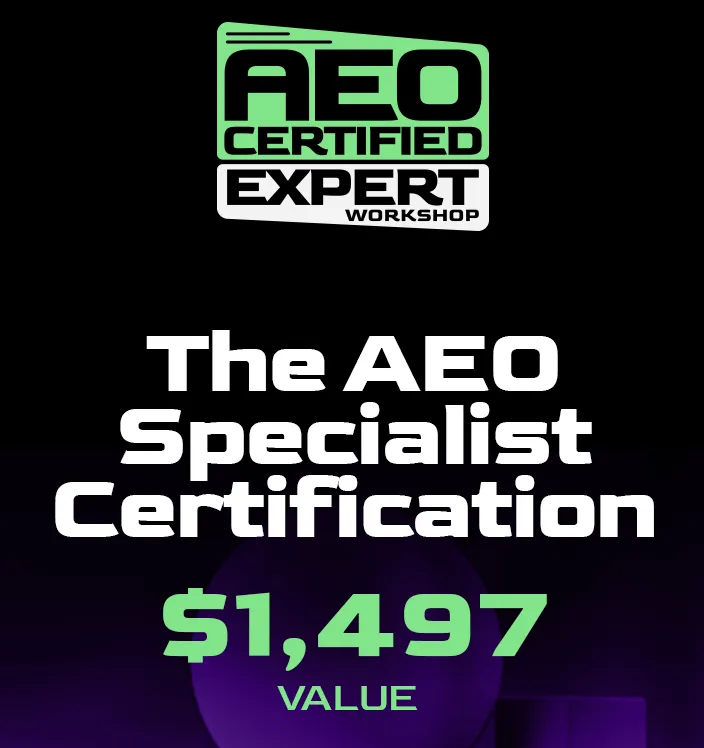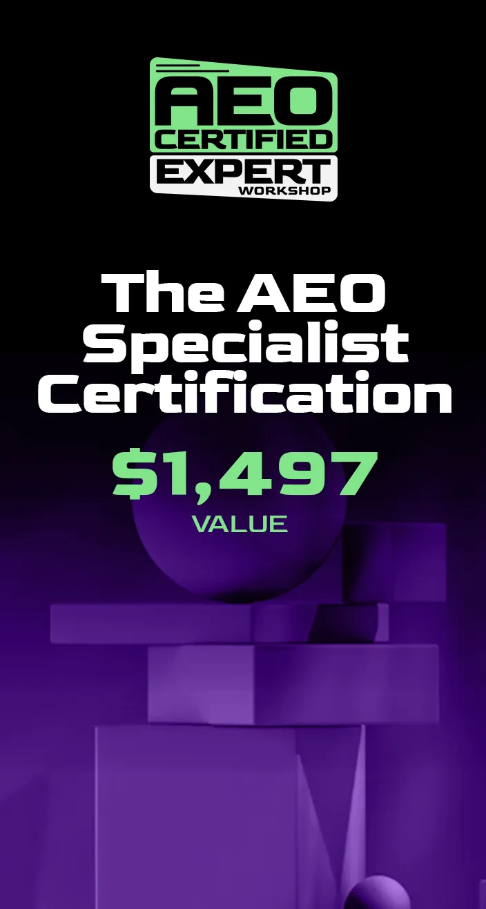 You can invest $97 today and position yourself among the first 500 certified AEO specialists in the world...
