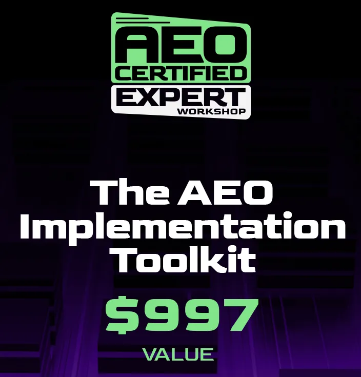 - The full AEO Implementation Toolkit (audits, schema templates, dashboards, and more)